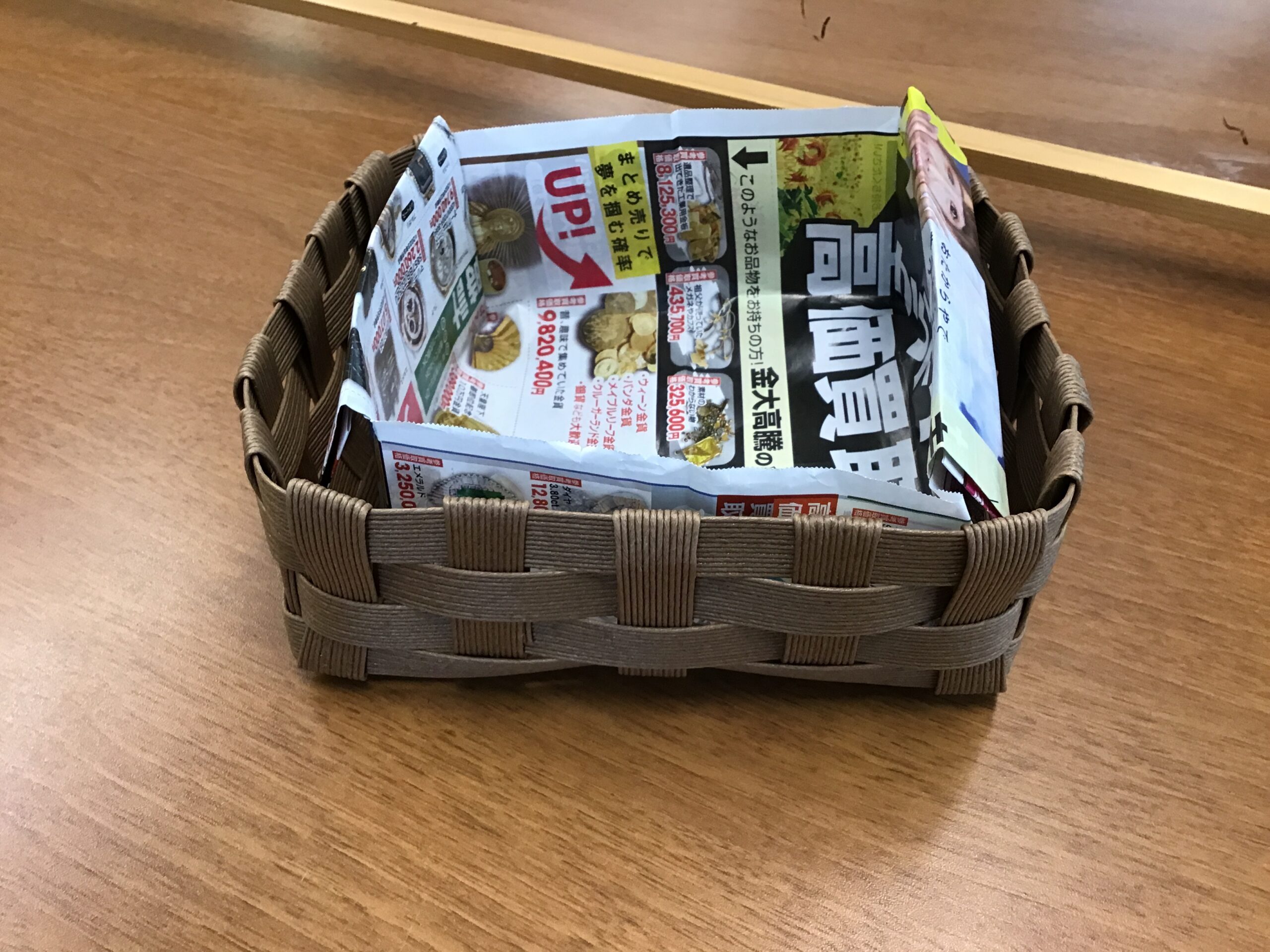 「今度は広告で折った紙箱を入れるかごが欲しいわ~」