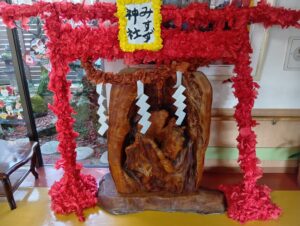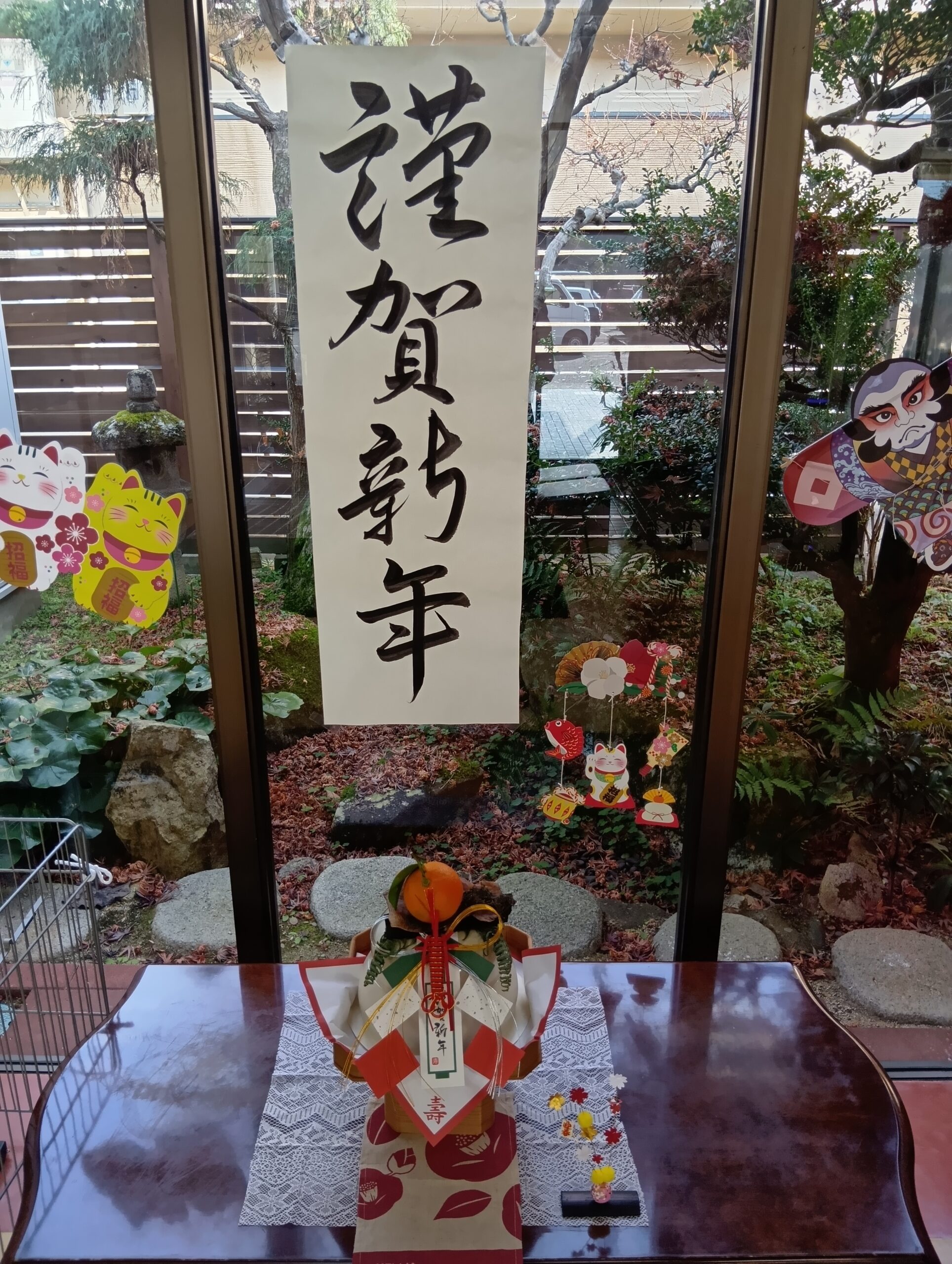 さて 恒例となりましたが みすず荘の玄関には荘長による「謹賀新年」を飾り