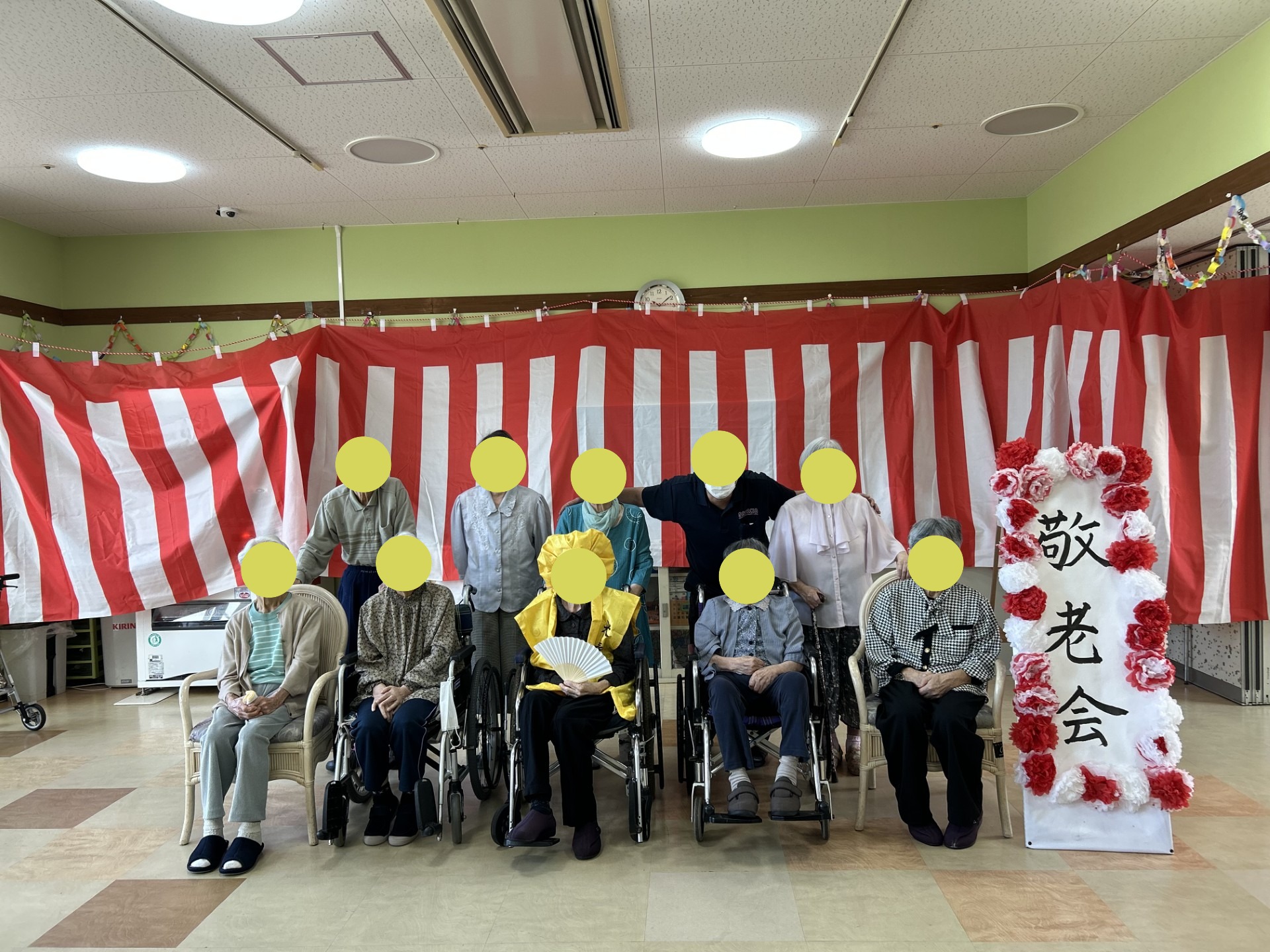 本日は、年に一度の「高齢者の方を敬い、長寿を祝う日」ということで、盛大なイベントを職員で企画させていただきました!